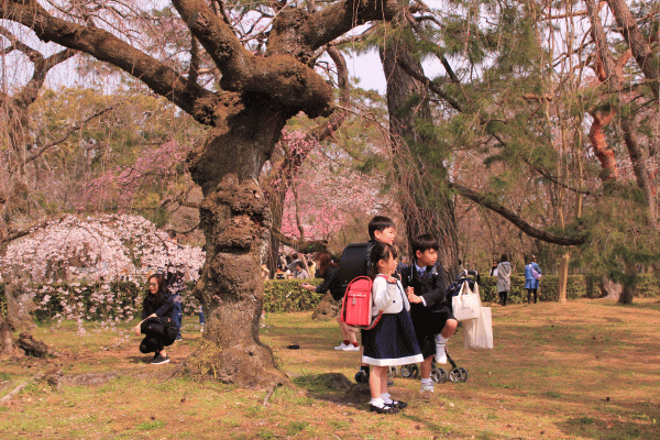 そのため「御所の見学はできません」と伝えられた私たち観光客は、御苑のあちらこちらで咲いている桜を求めて