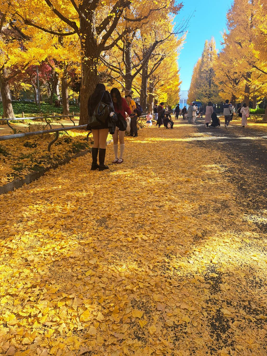 雲ひとつない澄んだ青空に綺麗な黄色が映えて、イチョウ並木が見頃を迎えていました。