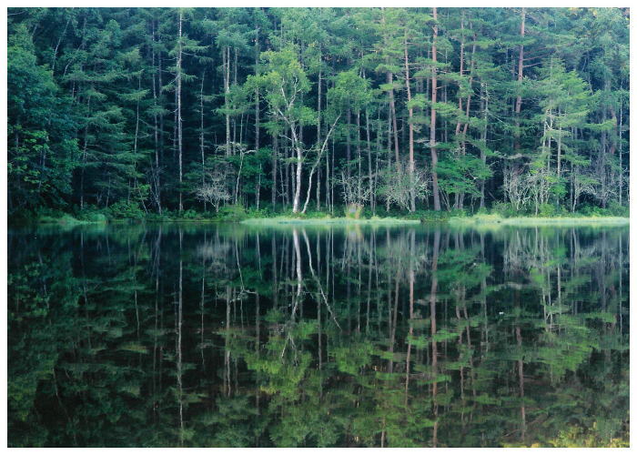 誰でも一度は目にしたことがあると思います。あの文化勲章受章者、東山魁夷画伯が白い馬を入れて描いた湖、そう、あの有名な作品「緑響く」の舞台がここです。